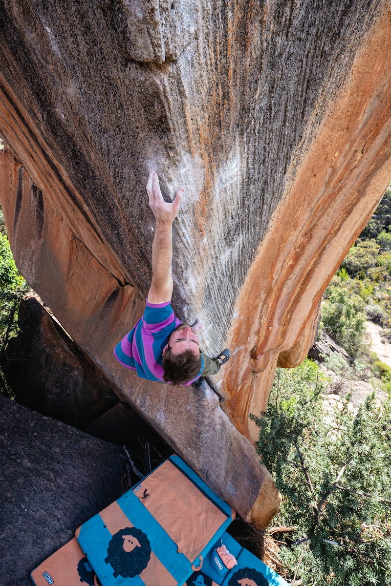 Cette année, je suis arrivé à Rocklands avec l’idée d’y rester deux fois plus longtemps qu’en 2024. Mentalement, j’étais plus détendu. Les premiers jours ont été tranquilles : je travaillais tous les mouvements, j’expérimentais de nouvelles séquences de pieds et différentes manières de prendre les pinces. Je ne cherchais pas à reproduire les sensations de l’année précédente pour l’enchaîner vite : je voulais trouver une manière plus efficace de le grimper.